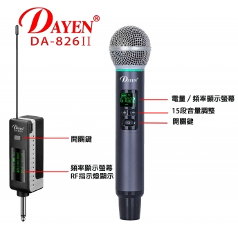 本產品是採用目前最先進的無線數字傳輸技術設計,實現了射頻信號數位化,音頻信號數位化傳輸,大大提高了信號傳輸的穩定信和保密性,減少傳輸的損耗,而由音頭決定音質效果可以做到接近完美,通過更換音頭滿足廣大客戶的要求。射頻信號內含36個頻率,麥克風防干擾達到最強,不受外界任何信號干擾產生雜音,可達到一流KTV房間等級水平;本產品適用個人電腦、教學、會議室、戶外活動、KTV唱歌等等,使用簡單方便,凡是帶有3.5 & 6.3輸入孔的音響設備都能兼容使用。